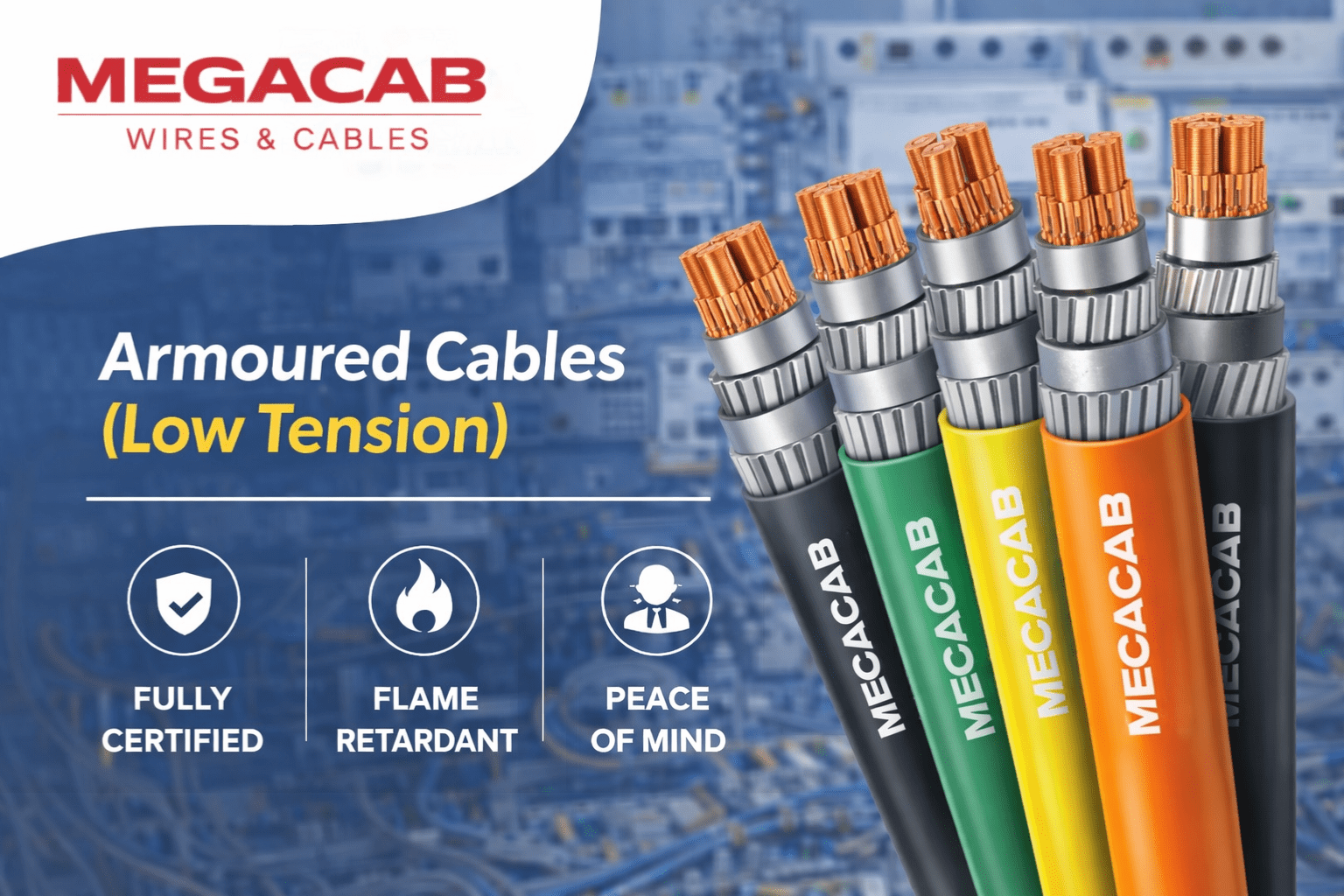 Megacab offers premium Armoured Low Tension (LT) Cables designed for superior strength, electrical safety, and reliable power transmission in low-voltage applications. Ideal for industrial, commercial, and outdoor installations, our armoured cables combine robust mechanical protection with excellent electrical performance to withstand demanding environments.