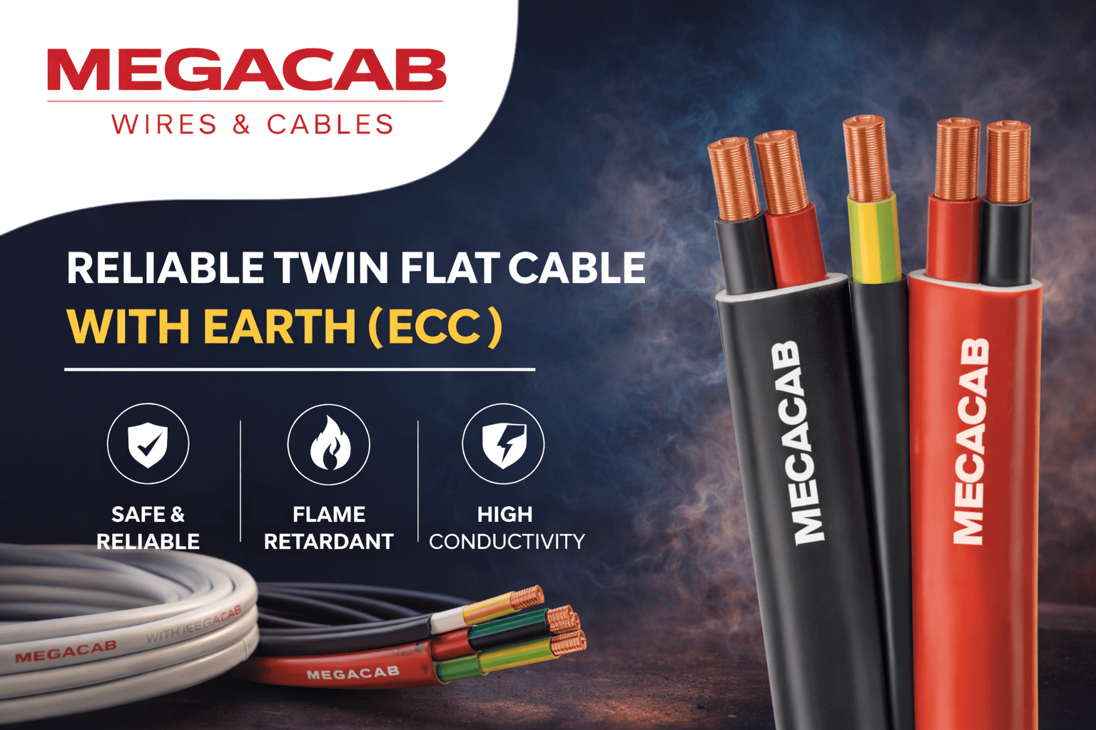 Megacab offers premium Twin Flat Cables with Earth (ECC) designed to deliver safe, efficient, and long-lasting electrical connections for domestic and commercial wiring. These cables are developed with precision to meet electrical safety standards while providing flexibility and ease of installation. Ideal for concealed and exposed wiring, Megacab Twin Flat Cables are engineered for dependable performance across various applications.